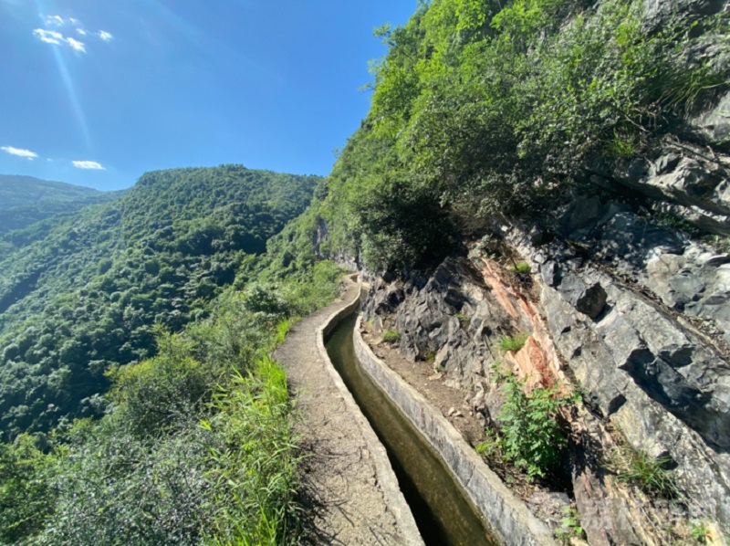 大發(fā)渠位于貴州省遵義市播州區(qū)平正仡佬族鄉(xiāng),這是一條橫跨3個村、10余個村民組,主渠長7200米、支渠長2200米,經過3座大山、大小9個懸崖、10多處峻嶺的水渠,其中大土灣巖、擦耳巖和灰洞巖最為險要,要從懸崖峭壁上打出半幅隧道才能通過。上世紀60年代初,由團結村草王壩大隊支書黃大發(fā)帶領群眾歷經36年用雙手一點點開鑿出來的,水渠的成功修建,結束了村莊缺水的歷史,改變了村莊沒米飯吃的面貌,被當?shù)厝罕娪H切地稱為“大發(fā)渠”。