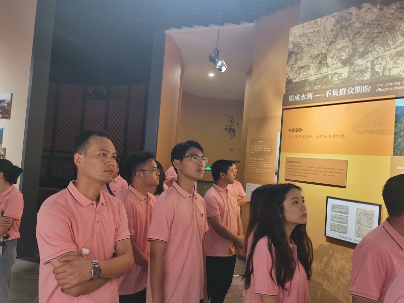懷著萬分崇敬的心情,20位黨員同志又來到“大發(fā)渠陳列館”參觀,通過一件件工具、一幅幅圖片以及當年留下的一頁頁文字信札更深切地了解了大發(fā)渠的修建過程,當年修渠的艱辛和不易仿佛就在眼前。大發(fā)渠繞三重大山,過三道絕壁,穿三道險崖,全長9400多米,耗時36載,為了這條生命渠能成功修建,還犧牲了女兒的最佳治療時間,大家深受感動,感受到了一名優(yōu)秀共產黨員的責任與擔當,所有的同志們都得到了一次心靈的洗禮和黨性的錘煉。